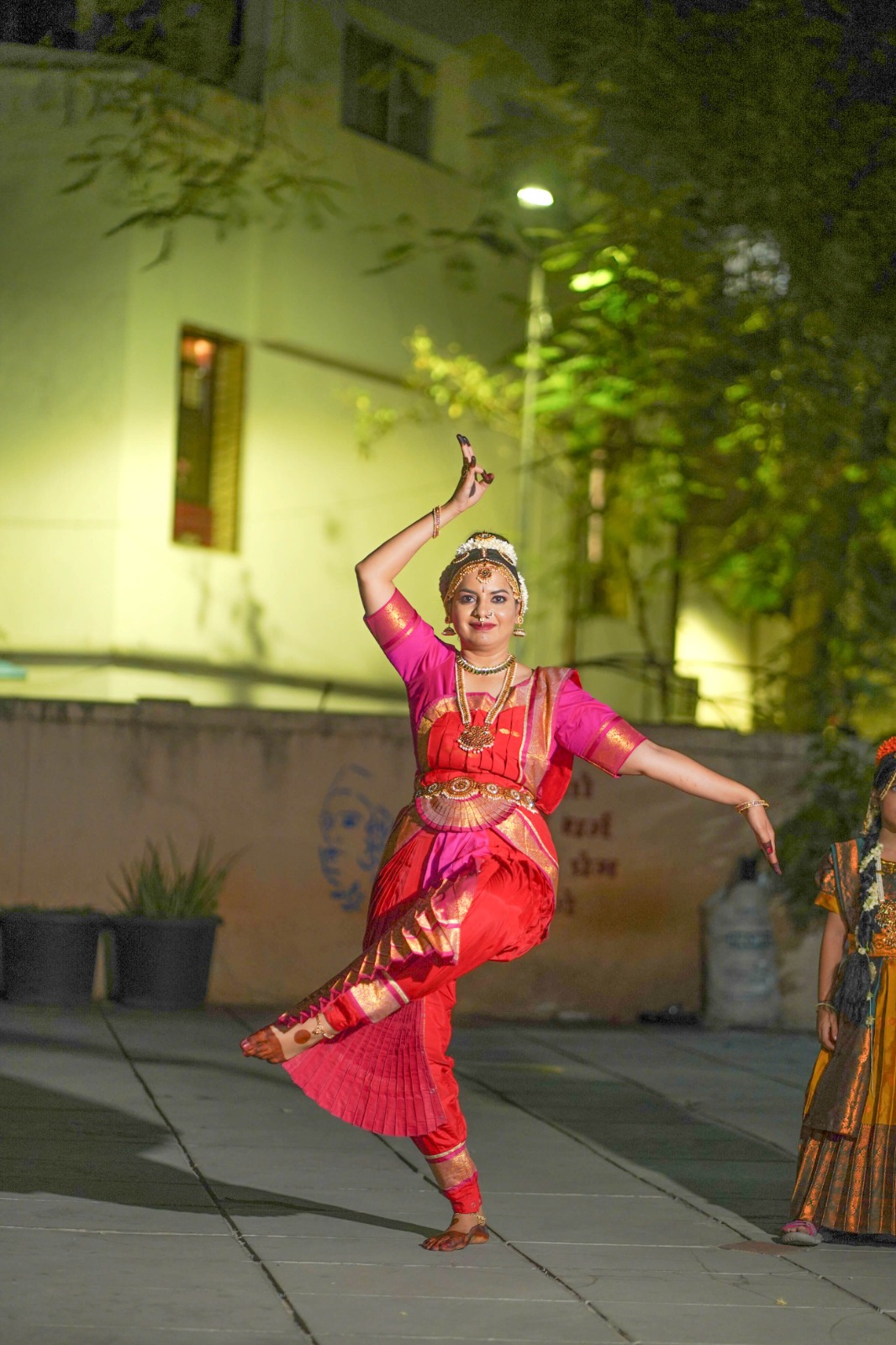 With over 18 years of experience in Bharatanatyam and folk traditions, and 11 years of dedicated service, Dipti has shared her art with students and seekers, presenting dance as a sacred path.